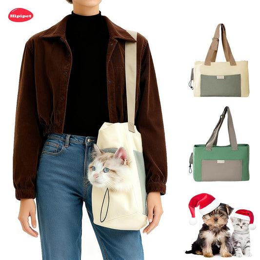 [Hipipet] Cat Bag with Exposed Head, Portable Crossbody, Breathable Canvas Hand-Held Shoulder Bag, Suitable for Small and Medium-Sized Pets, Universal for All Seasons